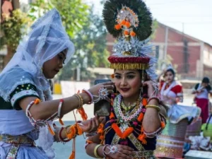 Meghalaya is known for its matrilineal society, where lineage and inheritance pass through women. The Khasi, Garo, and Jaintia tribes define the region’s cultural landscape.